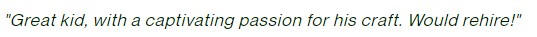 "Great kid with a captivating passion for his craft"