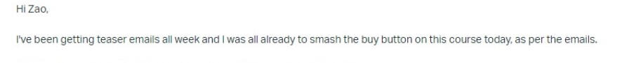 "Hi [client's name]... ...I was all already to smash the buy button on this course today"