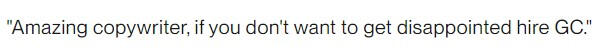 "Amazing copywriter, if you don't want to get disappointed hire GC"