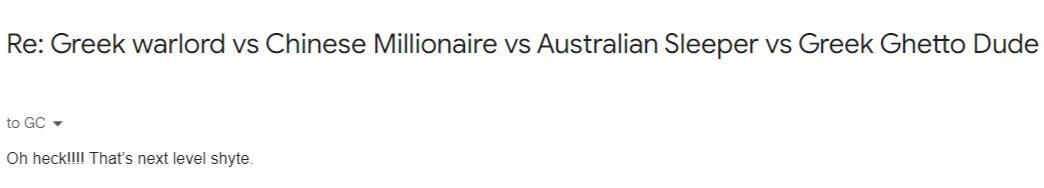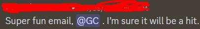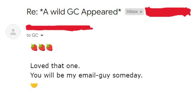 "Super fun email, GC. I'm sure it will be a hit