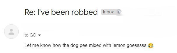 "Let me know how the dog pee mixed with lemon goesssss 😂"