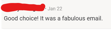 "Good choice! It was a fabulous email"